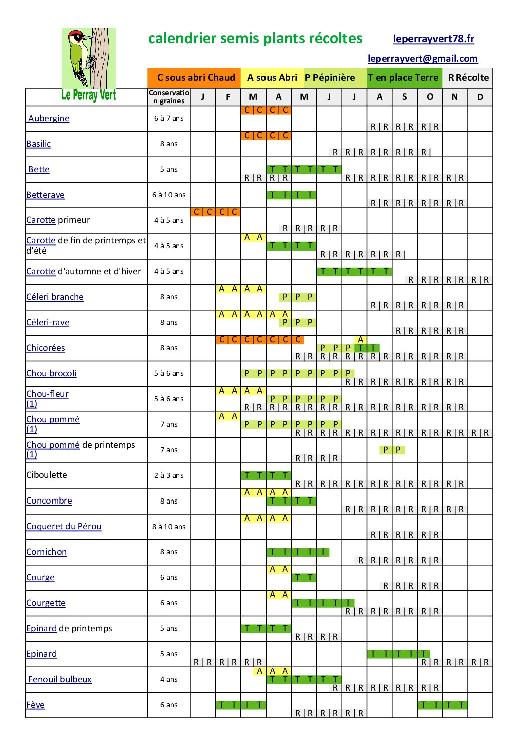 Le Perray vert vous offre son calendrier des semis, plantations et récoltes